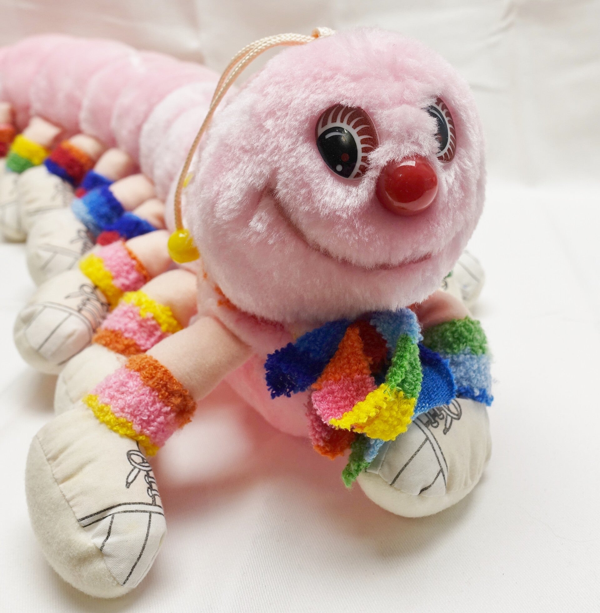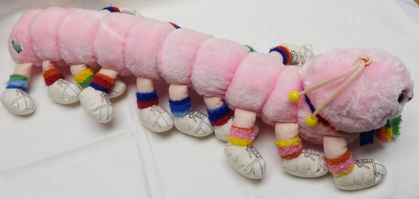 Dieses tolle Lots-a-Lots-a-Leggggggs darf weiterziehen. Es ist die Verion mit 10 Beinpaaren in Rosa. Die Füsse haben unterschiedliche Farben. Lots-a-Lots-a-Leggggggs ist ein cooles Plüschtier aus den 80ern.