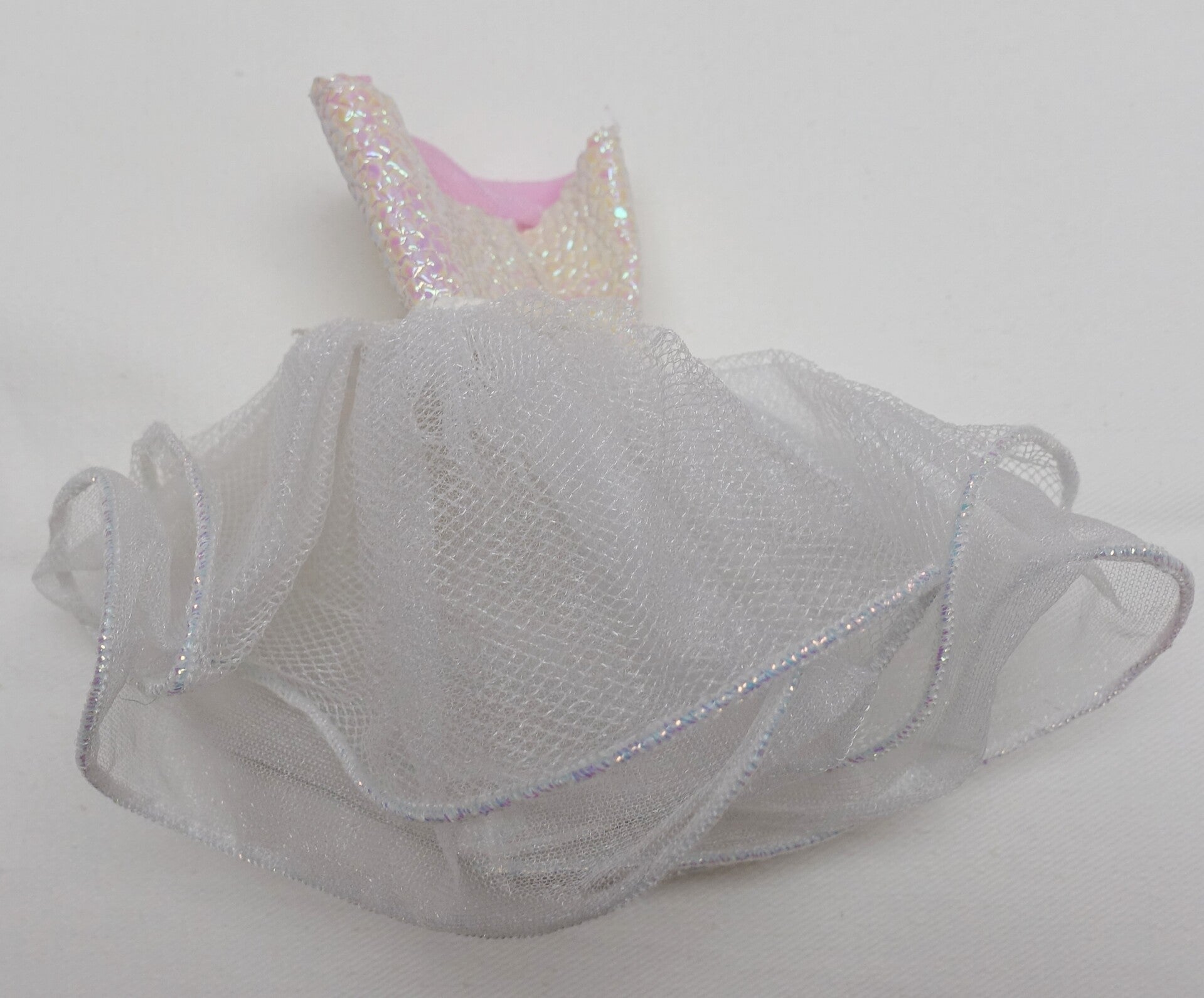 Vereinzelt können kleinere Flecken, Verfärbungen oder lose Fäden vorhanden sein. Dies ist aber normal für Barbiekleidchen womit einst gespielt wurde.