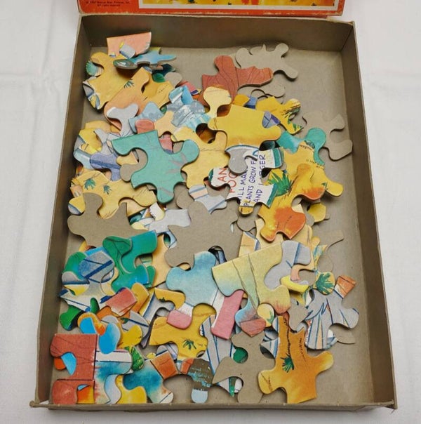 Dieses knuffige Bugs Bunny Puzzle aus den 60er Jahren darf weiterziehen. Es stammte ursprünglich aus Amerika. Was es besonders macht, ist die Form der einzelnen Puzzleteile. Leider fehlt aber ein Teil vom Puzzle. Doch es ist nach wie vor ein cooles Puzzle zum Spielen und Sammeln