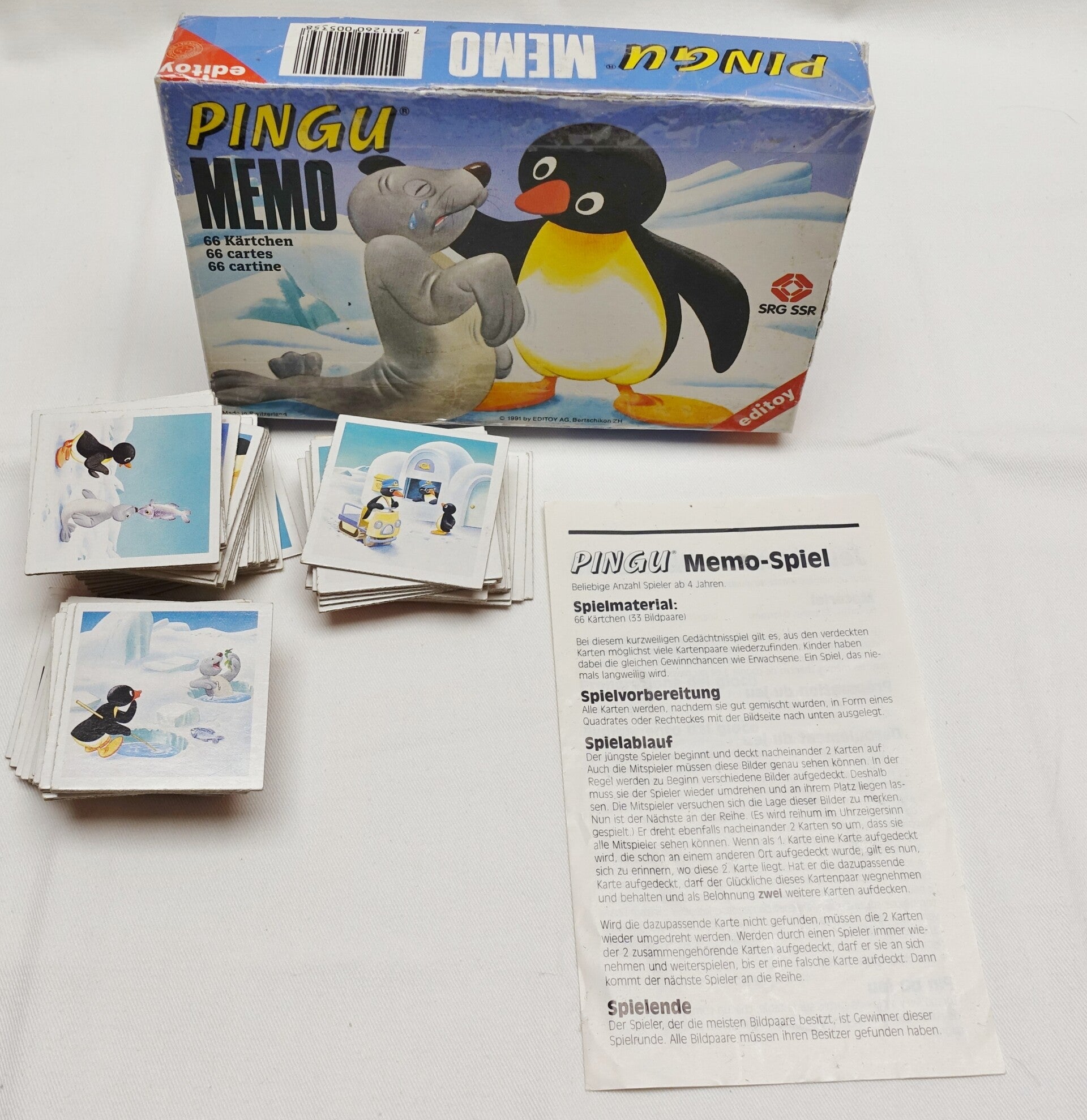 Pingu ein Klassiker schlecht hin. Dieses Pingu Memo ist komplett mit allen Kärtchen inkl. der Spieleanleitung. Die Spieleanleitung ist in den 4 Landessprachen der Schweiz (Deutsch, Französisch, Italienisch und Romanisch)