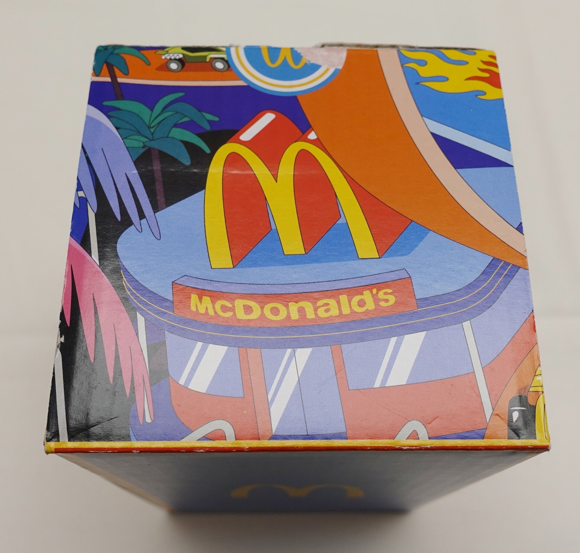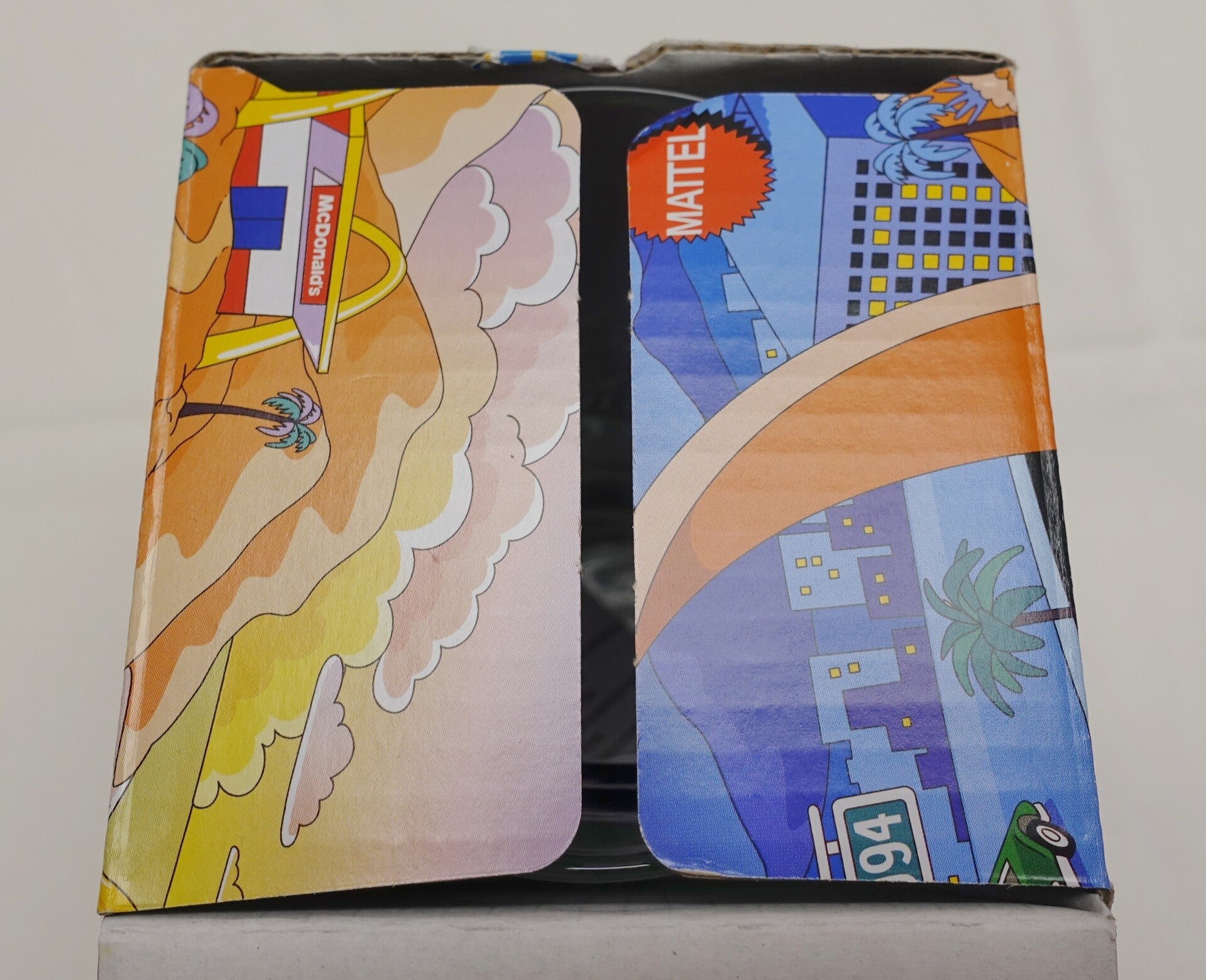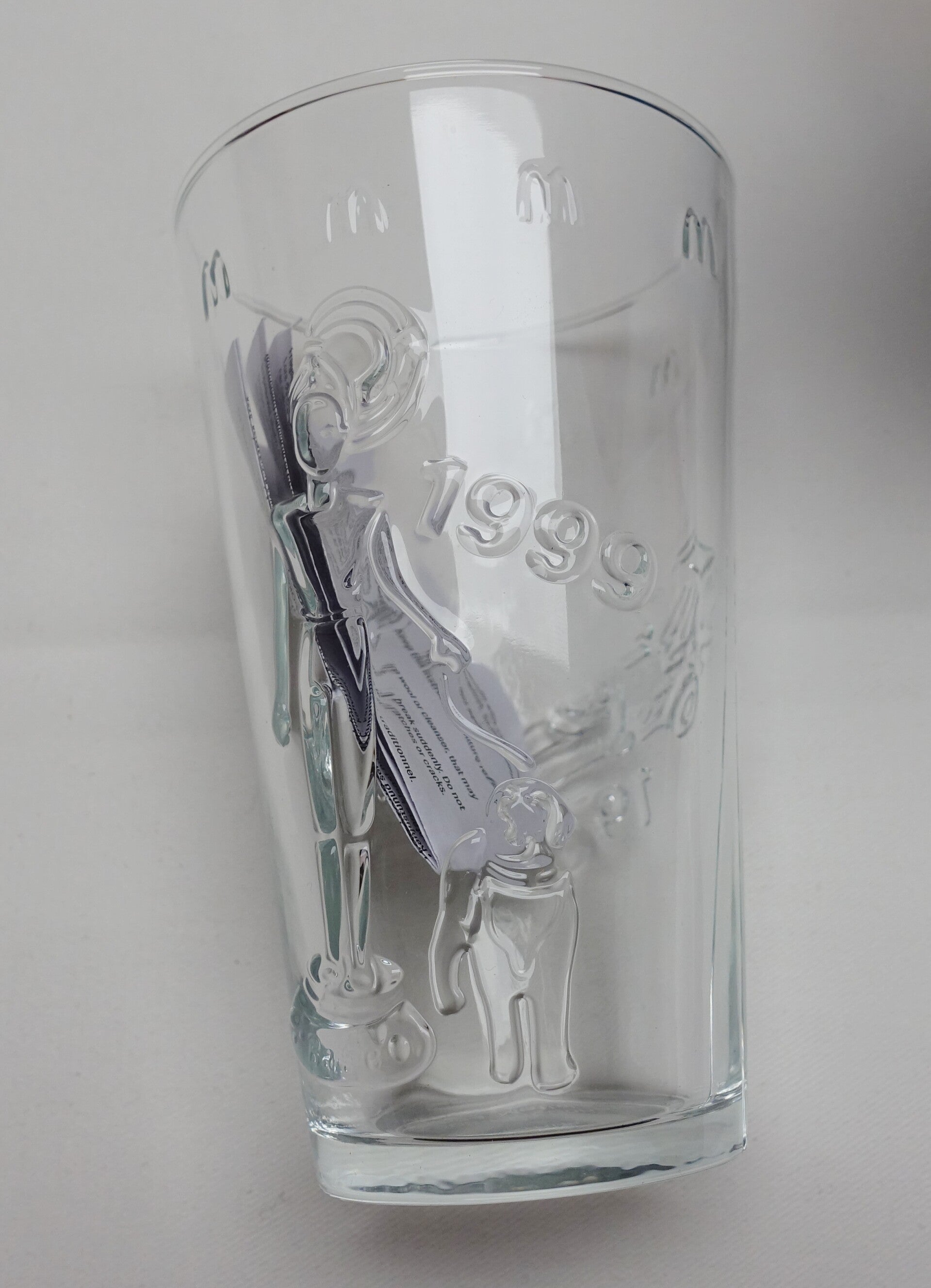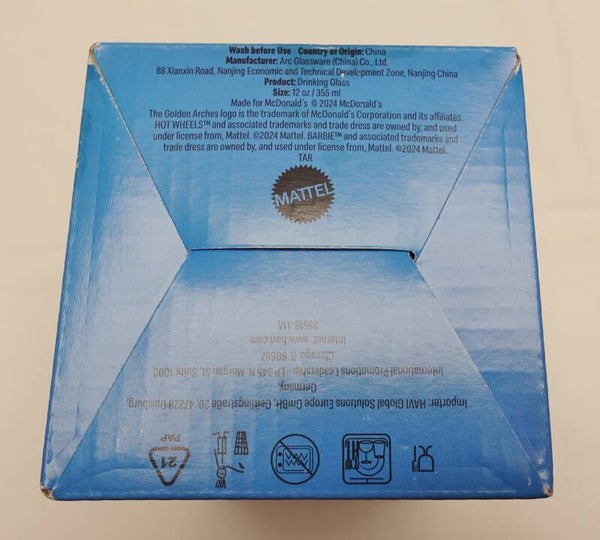 Dieses lustige Mc Donalds Sammlerglas hat ein Barbiemotiv sowie ein Hot Wheels Motiv drauf. Die Box wurde geöffnet. Ein cooles Sammlerglas.