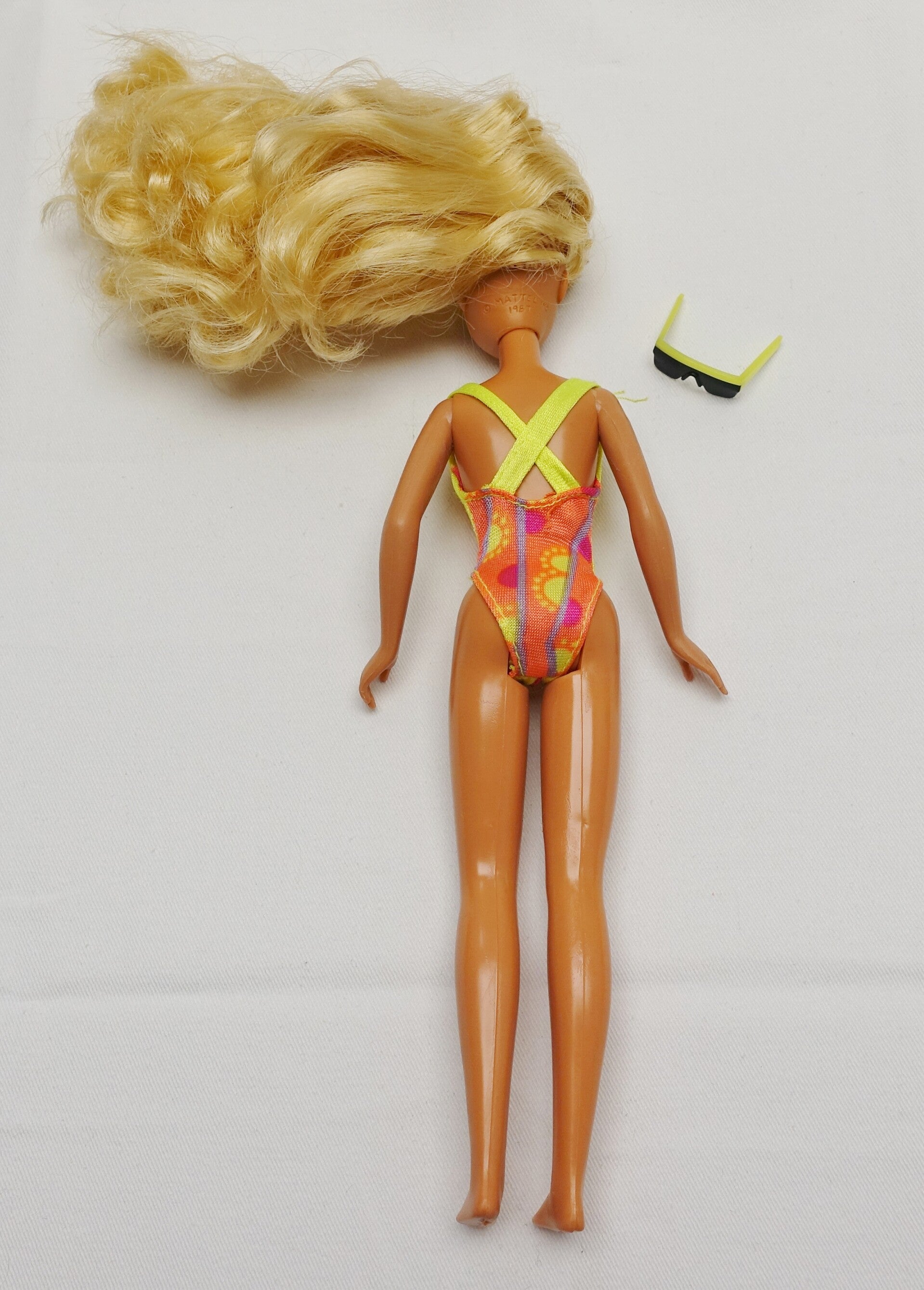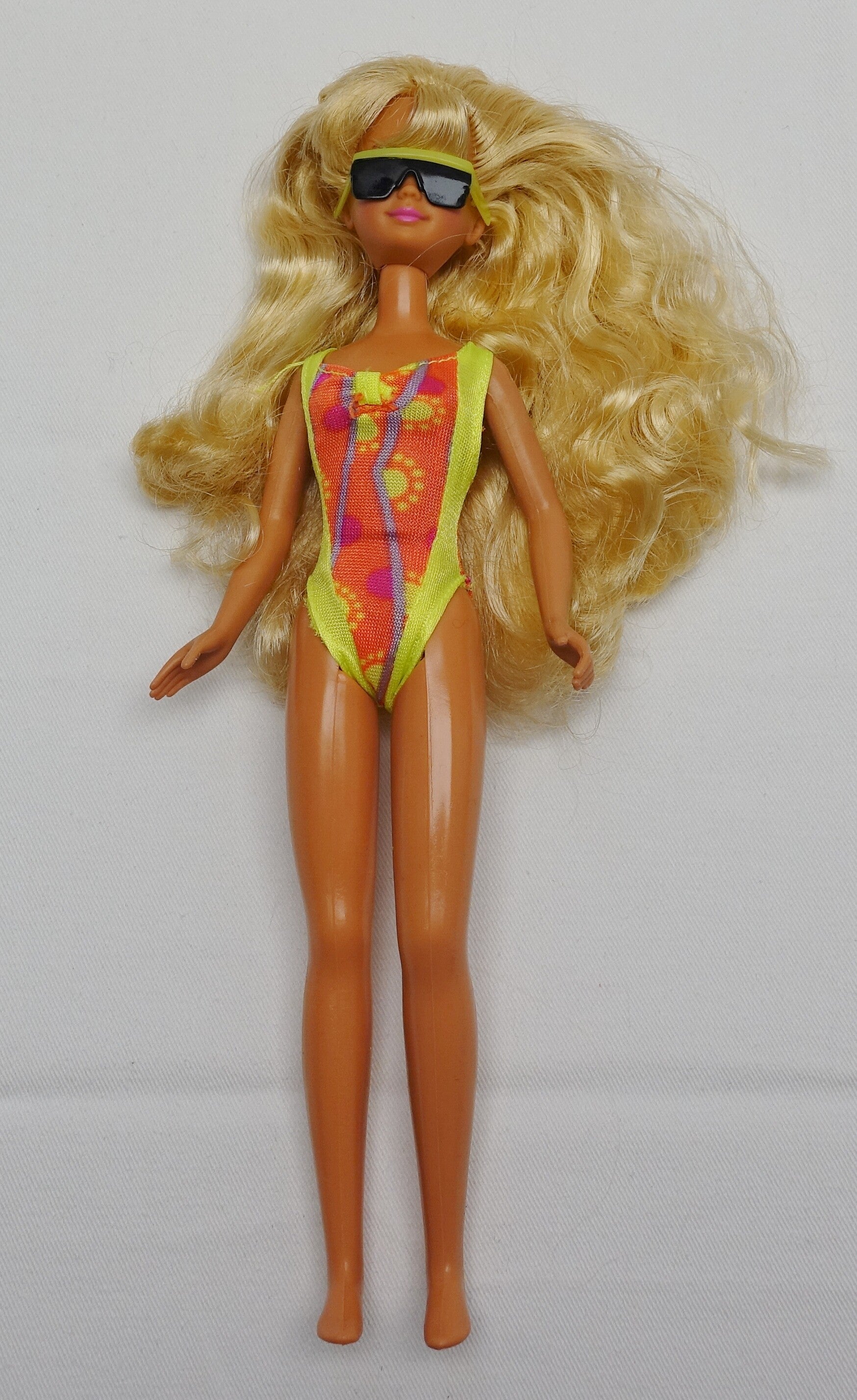 Diese süsse Skipper aus den 90er darf weiterziehen. Skipper ist eine der Schwestern von Barbie und mit diesem lässigen Beachlook verzaubert sie jeden. Skipper trägt ihr originaler Badeanzug sowie die dazugehörigen Sonnenbrillen