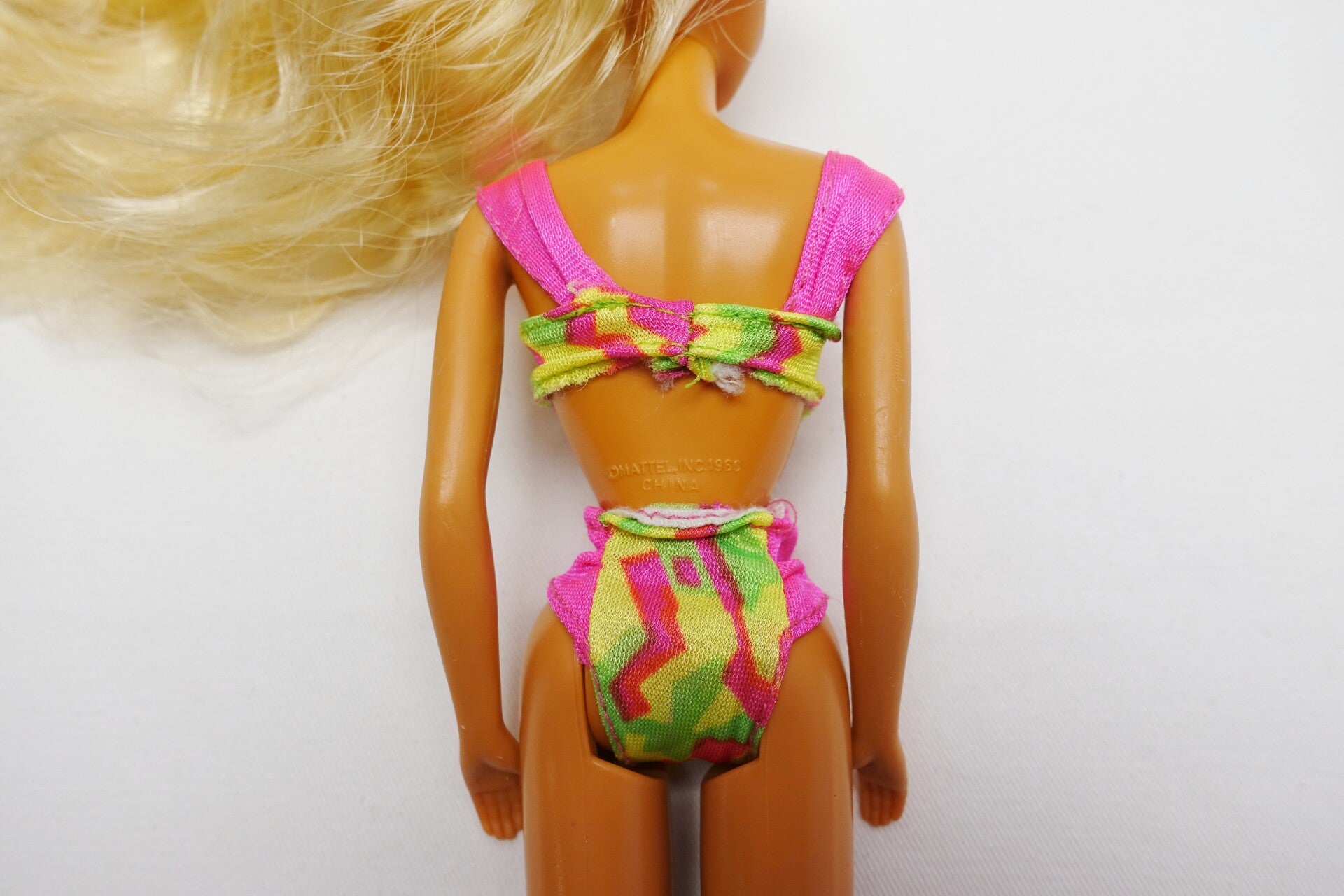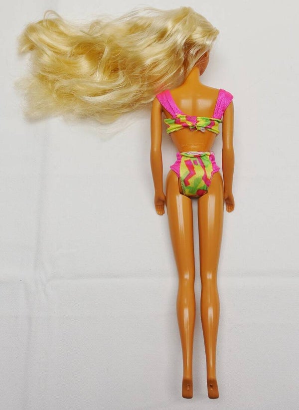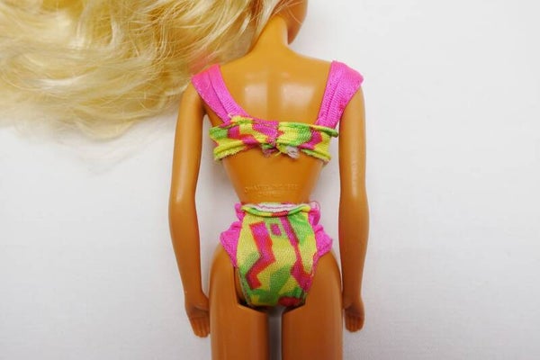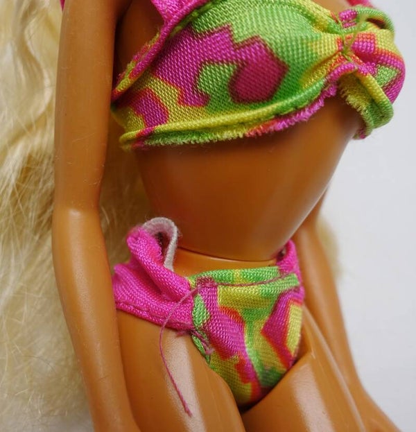 Zustand gesamt: Die Barbie selbst ist in einem guten Zustand. Das Elastikband an der Bikinihose ist lose geworden.