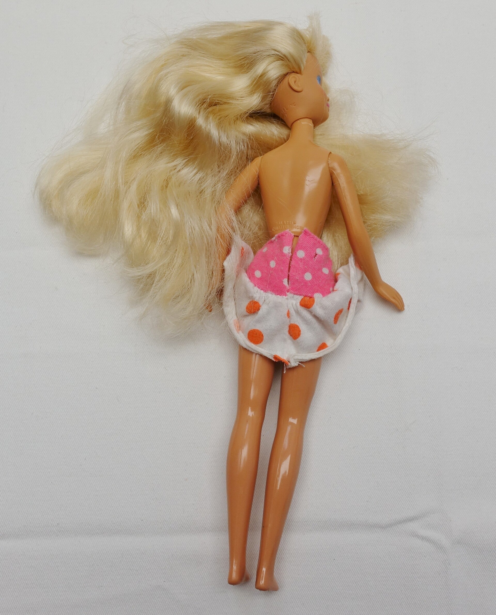Diese herzie Skipper darf weiterziehen. Sie trägt ihr originaler Rock, der leider die Knöpfe verloren hat. Doch man kann den sicher von Hand wieder zusammennähen oder Skipper andere Kleidchen anziehen.
