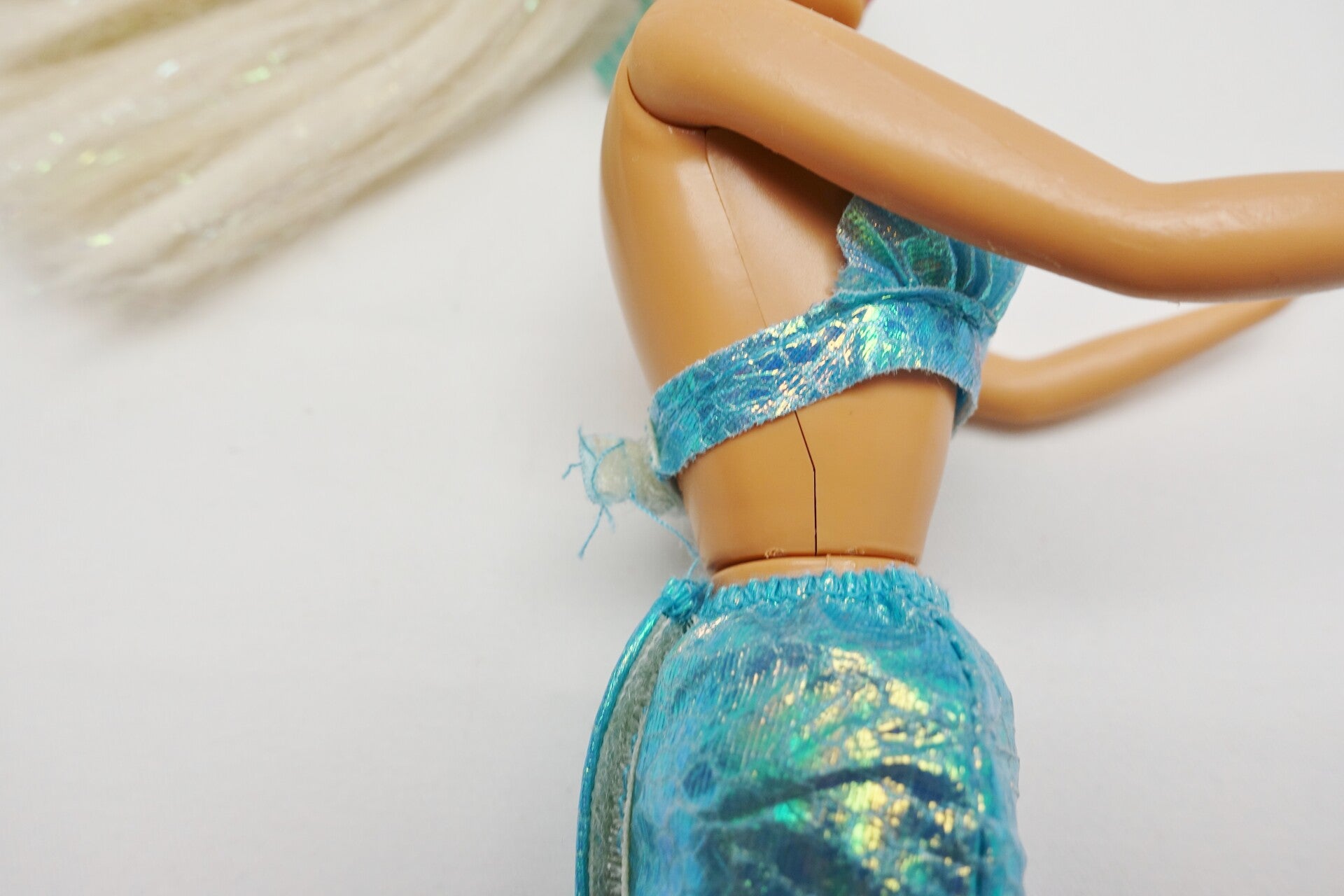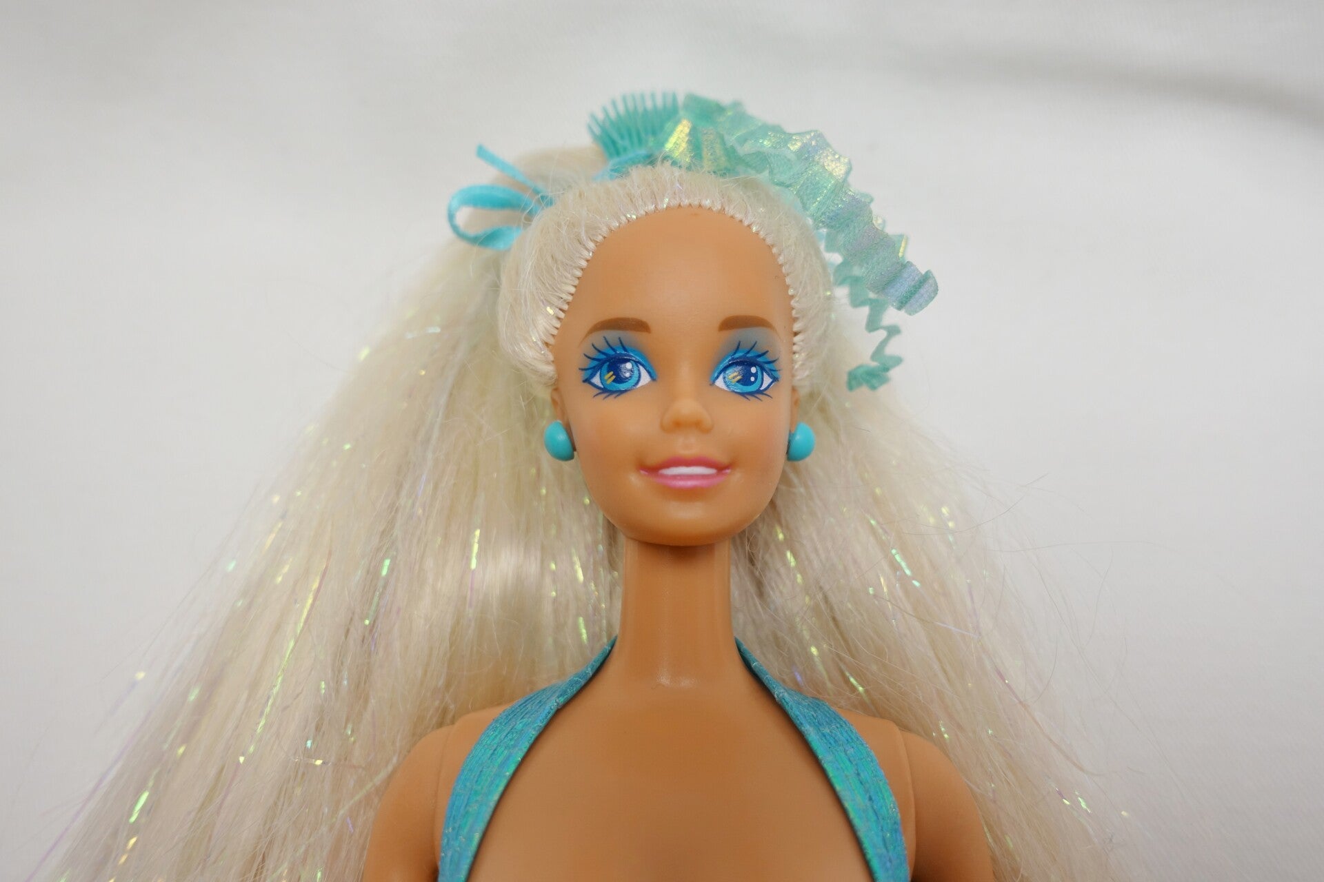Diese bezaubernde Meerjungfrauen Barbie darf weiterziehen. Sie trägt ihr originales Outfit, bestehend aus den Meerjungfrauenflossen, dem Bikinioberteil und der Krone im Haar. Eine Zauberhafte Barbie zum Spielen und Sammeln.