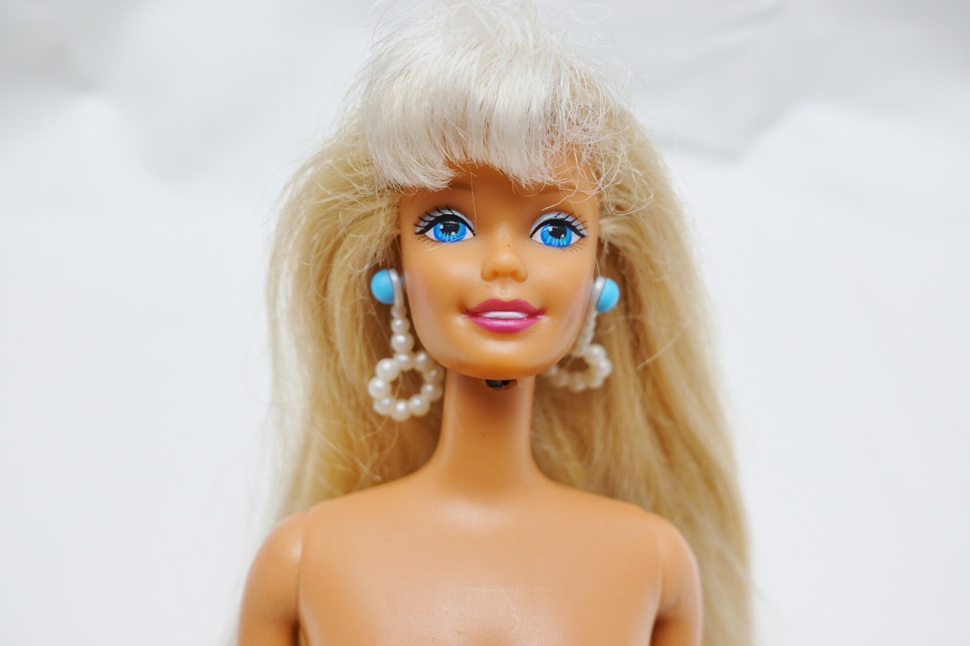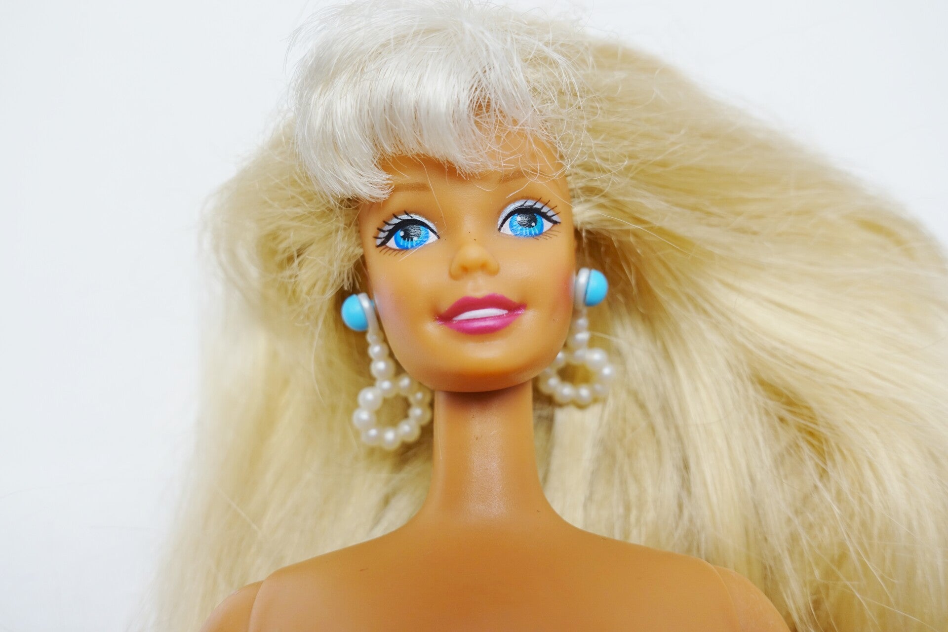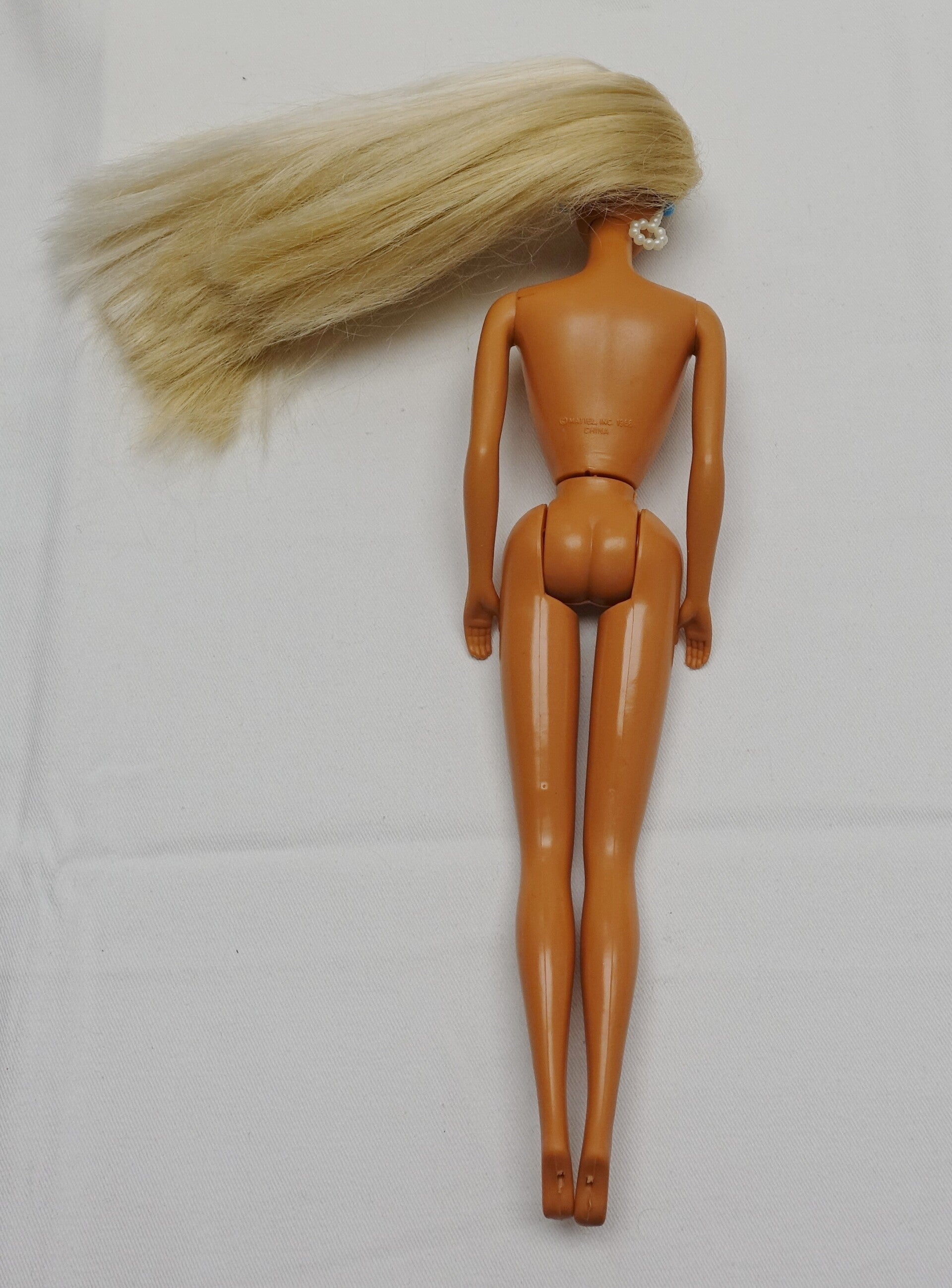 Diese hübsche Pearl Beach Barbie darf weiterziehen. Sie hat noch ihre originalen Ohrringe und ihre Haare sind zweifarbig. Platin Blond und ein dunkleres Blond.