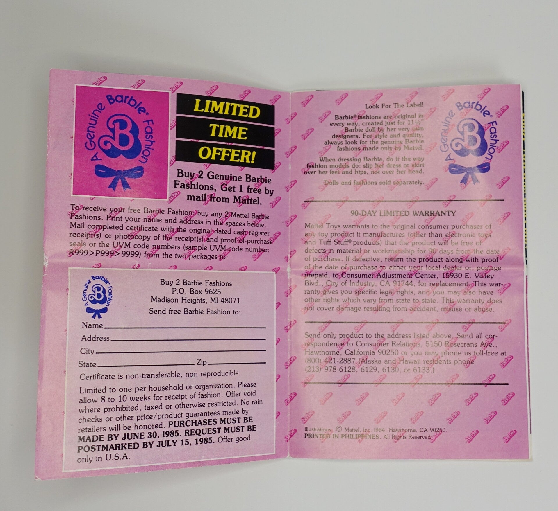 Dieses nostalgische Barbie Pamphlet darf weiterziehen. Es zeigt die verschiedenen Barbie Produkte welche im Jahr 1984 erschienen sind. Ein tolles Stück Barbie Geschichte ideal zum Sammeln oder als nostalgische Erinnerung.