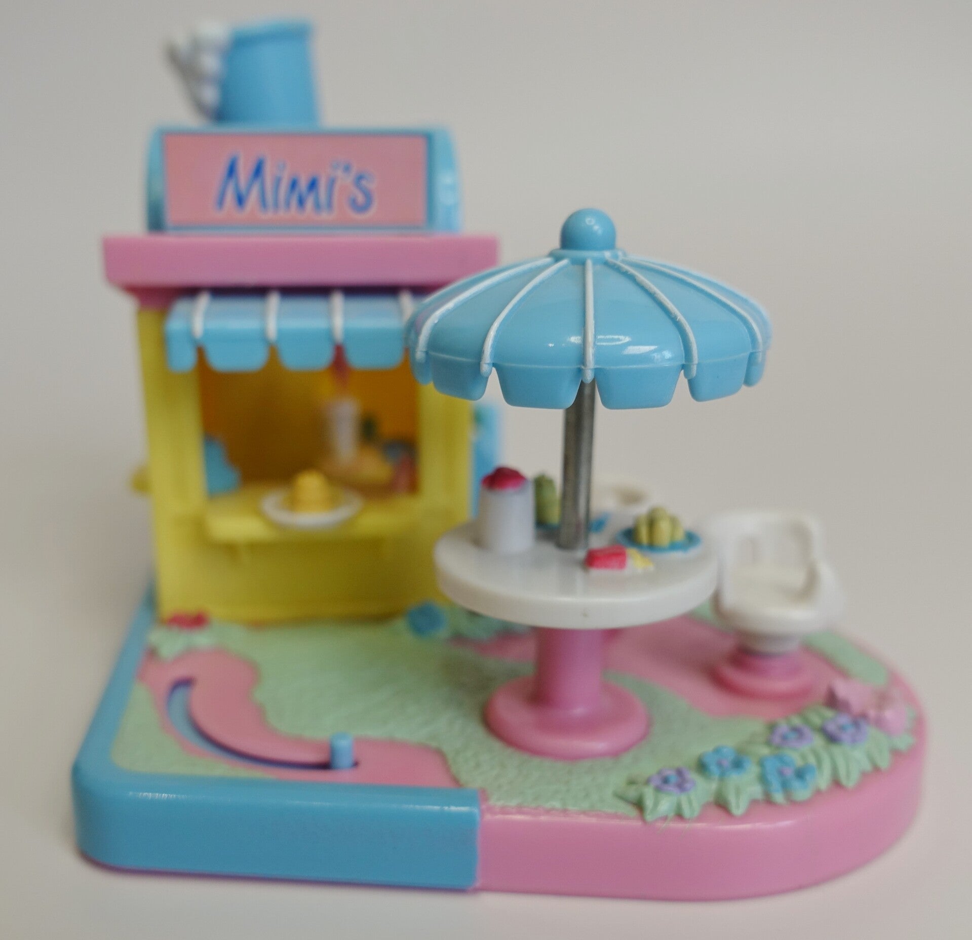 Dieses tolle Mimi and the Goo Goos Playset darf weiterziehen. Mimi and the Goo Goos ist eine Spielzeugserie von Bluebird Toys mit ähnlichem Charakter wie Polly Pocket. Das Set ist von 1994. Im Set dabei sind 3 Figürchen sowie ein Auto für das Drive In und das Spielset selbst. Wenn man das Rädchen auf der Rückseite betätigt, dann bewegt sich Mimi auf ihren Rollerblades sowie teile vom Spielfeld.