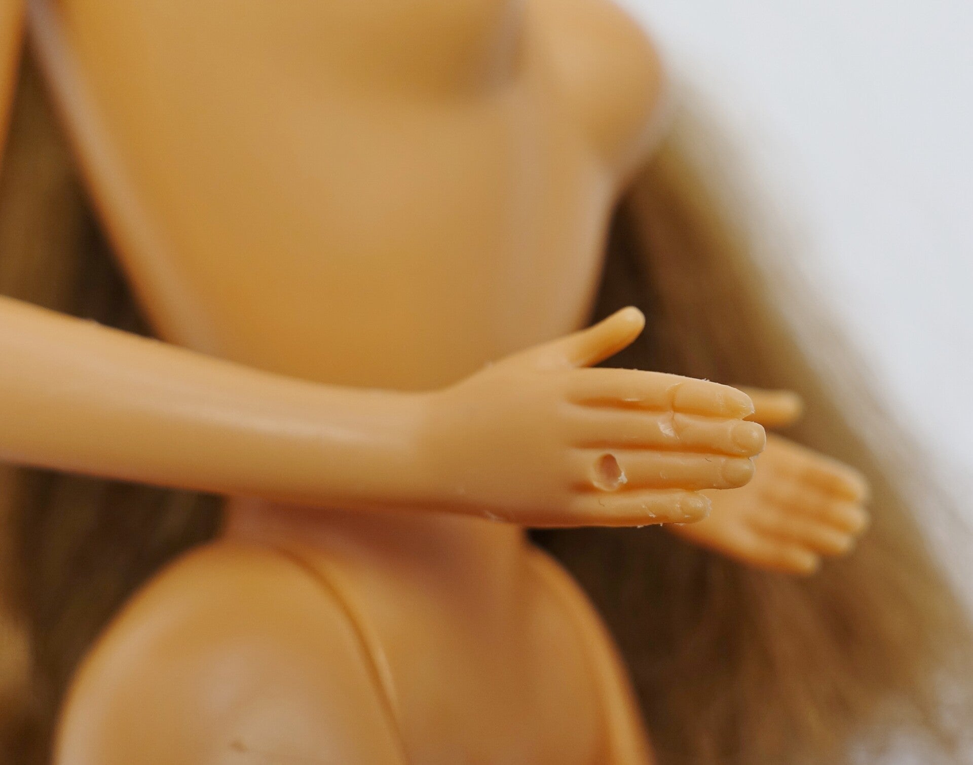 Zustand gesamt: Teresa ist in einem guten Zustand. Die Fransen wurden leider geschnitten und bei einer Hand hat es eine tiefere Einkärbung. Der Nacken ist etwas Spröde aber nicht abgebrochen.