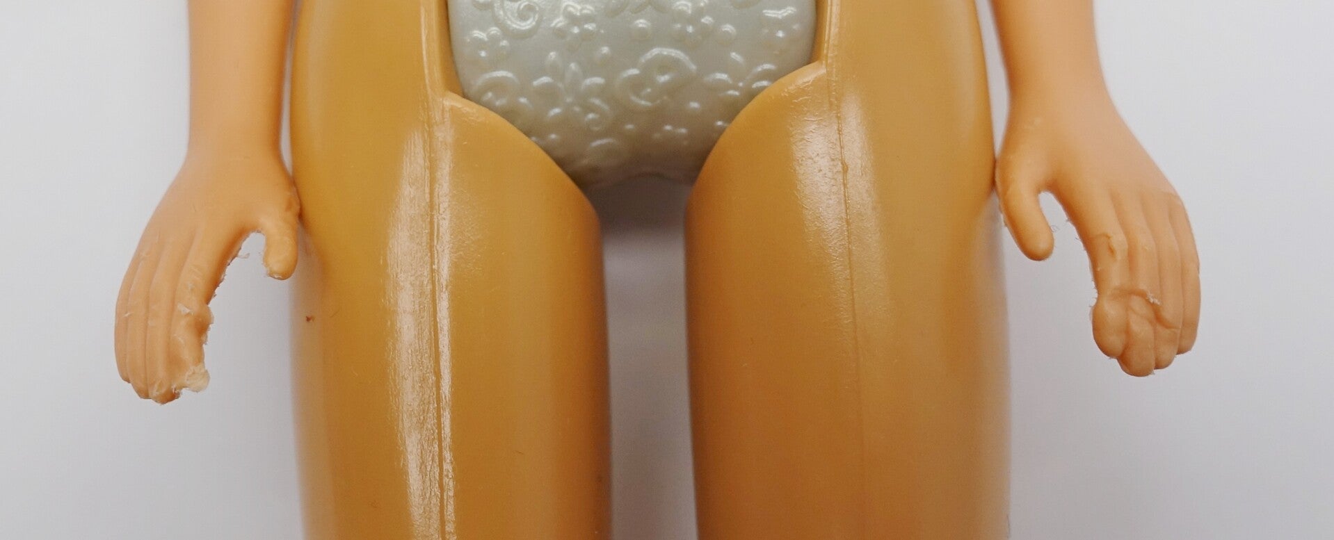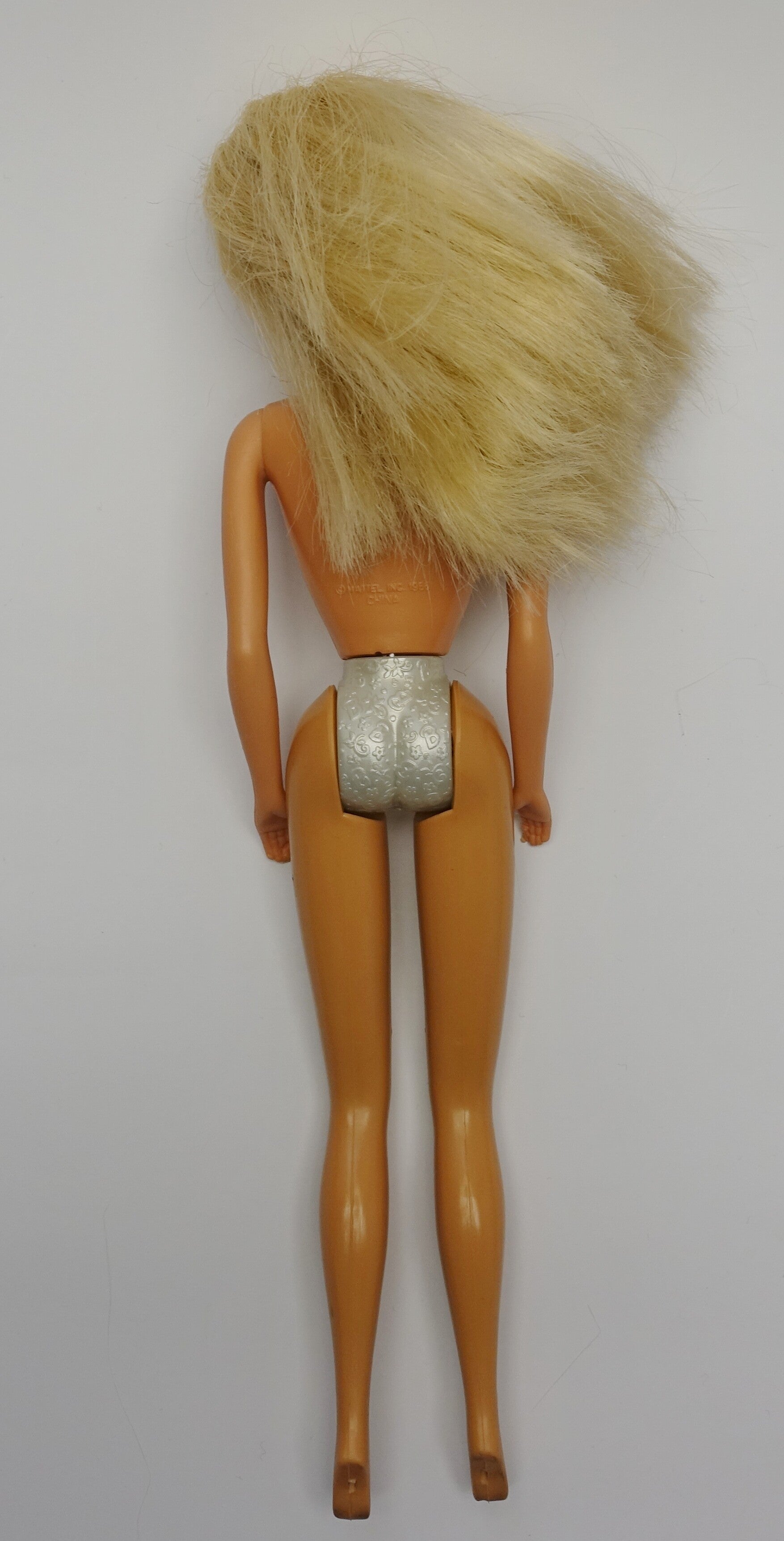 Zustand gesamt: Die Barbie ist in einem guten Zustand. Es ist möglich, dass ihre Haare etwas geschnitten wurden. Die Hände weisen stärkere Abnützungen auf.