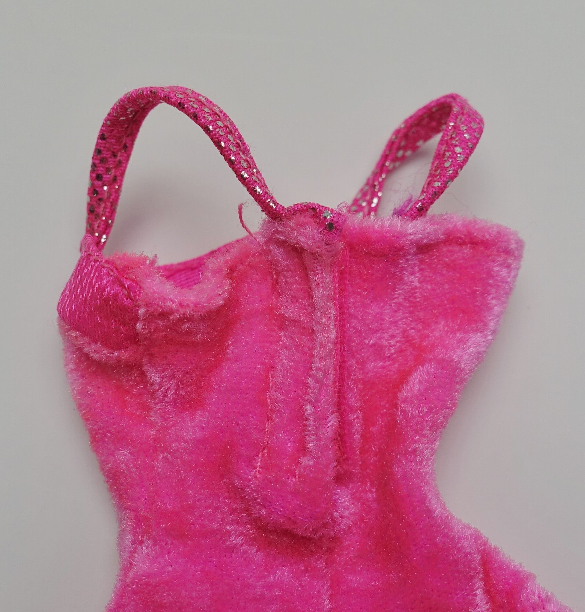 Vereinzelt können kleinere Flecken, Verfärbungen oder lose Fäden vorhanden sein. Dies ist aber normal für Barbiekleidchen womit einst gespielt wurde.