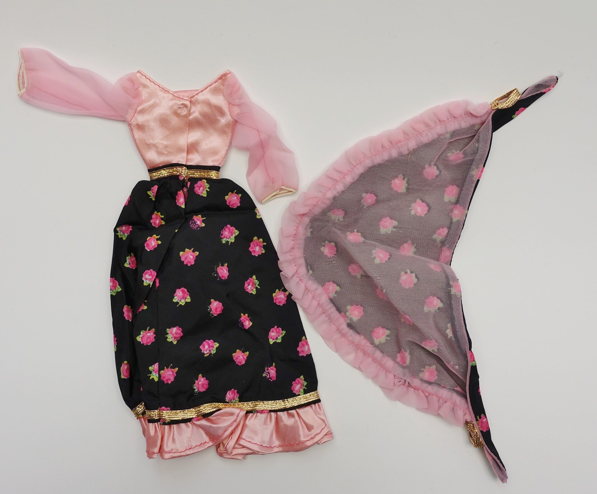 Dieses tolle Set wurde in den 70ern auf den Markt gebracht und war als Fashionpack für Donny & Marie Puppen bestimmt. Es passt jedoch auch Barbie. Ein sehr schönes, romantisches Outfit.