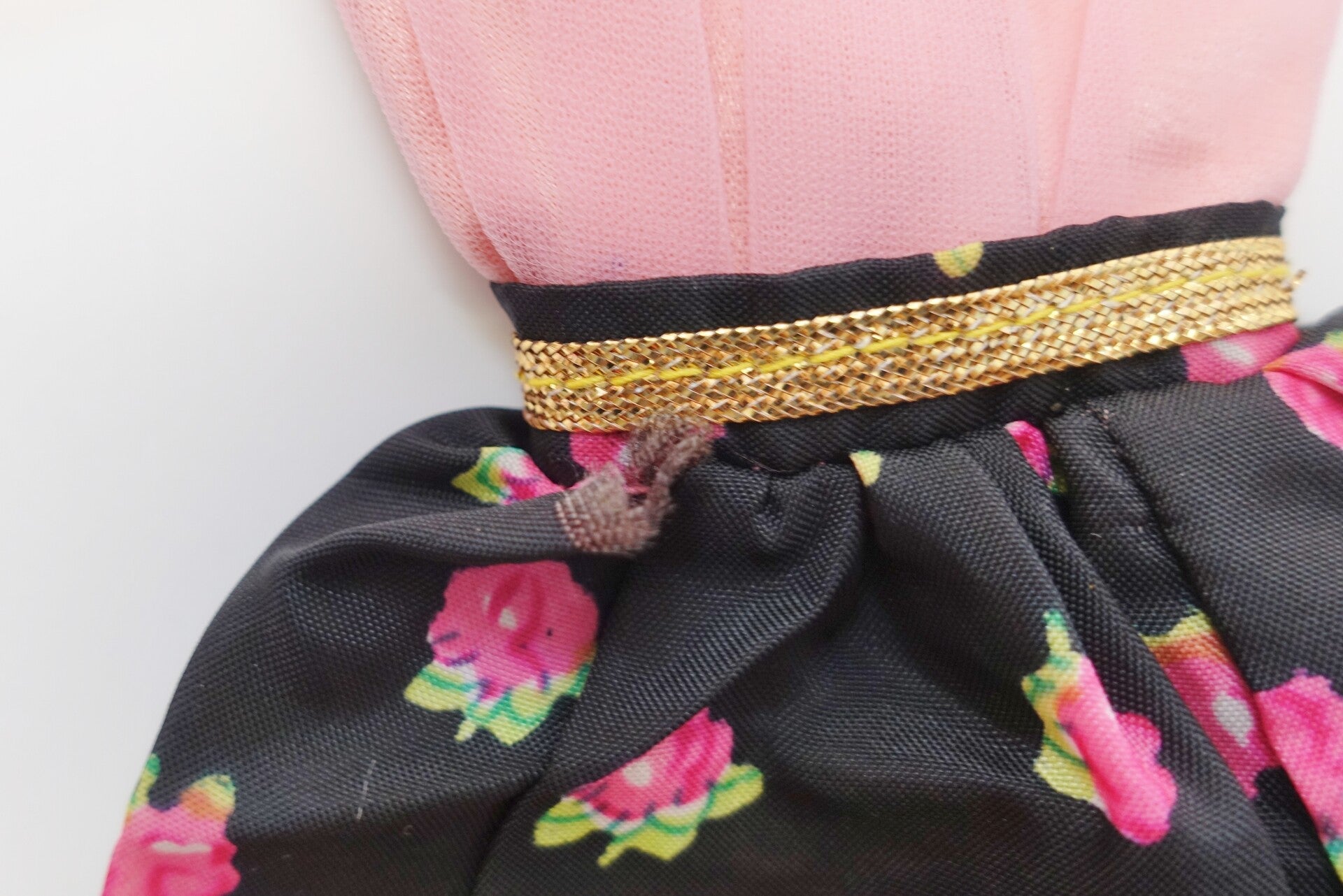 Vereinzelt können kleinere Flecken, Verfärbungen oder lose Fäden vorhanden sein. Dies ist aber normal für Barbiekleidchen womit einst gespielt wurde.